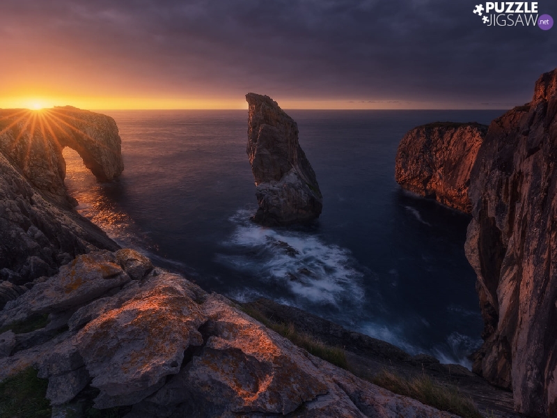 Great Sunsets, sea, Asturias, Spain, clouds, rocks