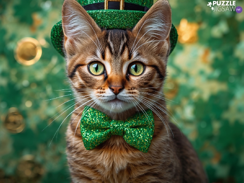 cylinder, Ai, Green, bow tie, cat