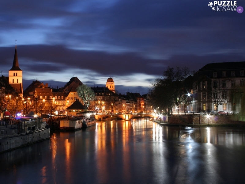canal, Town, Night