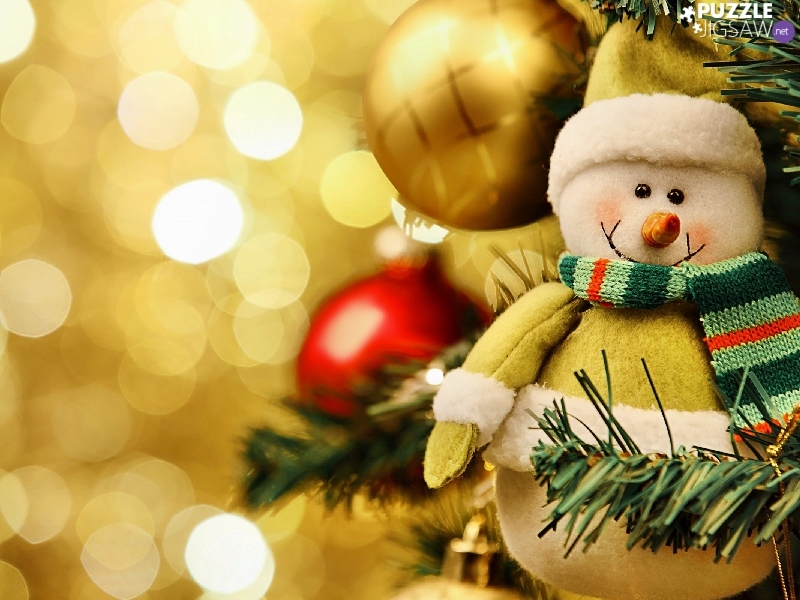 Snowman, Bokeh, christmas, christmas tree