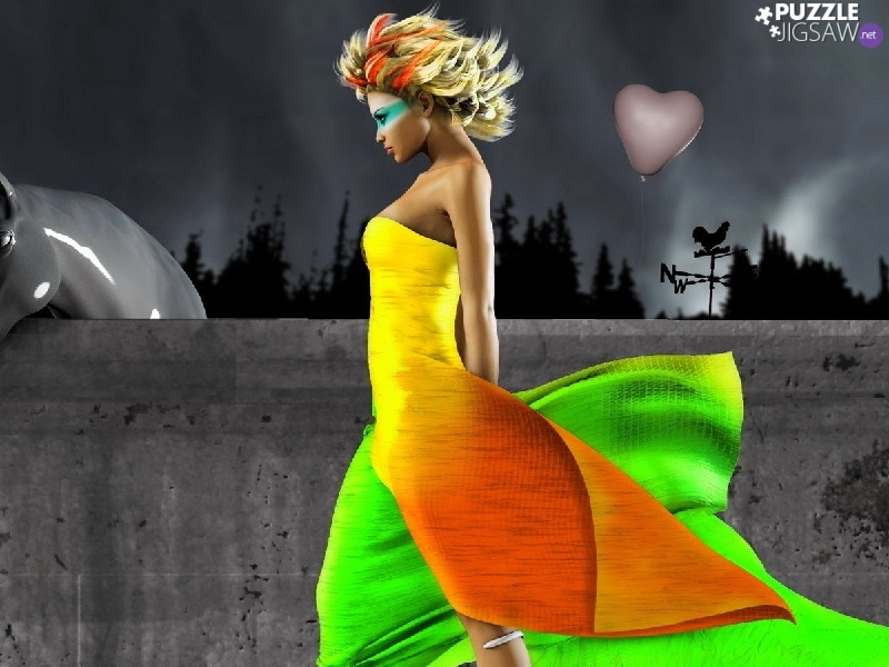 girl, Coloured, dress, Horse