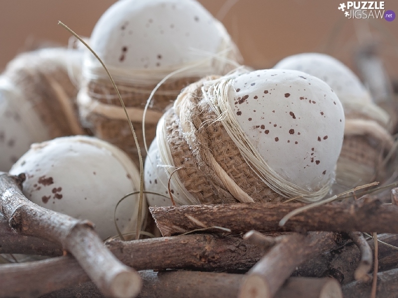 Easter, decoration, twine, stick, eggs