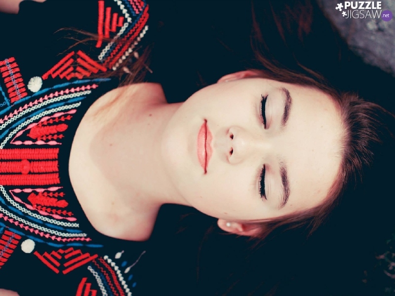Women, closed, Eyes, brunette