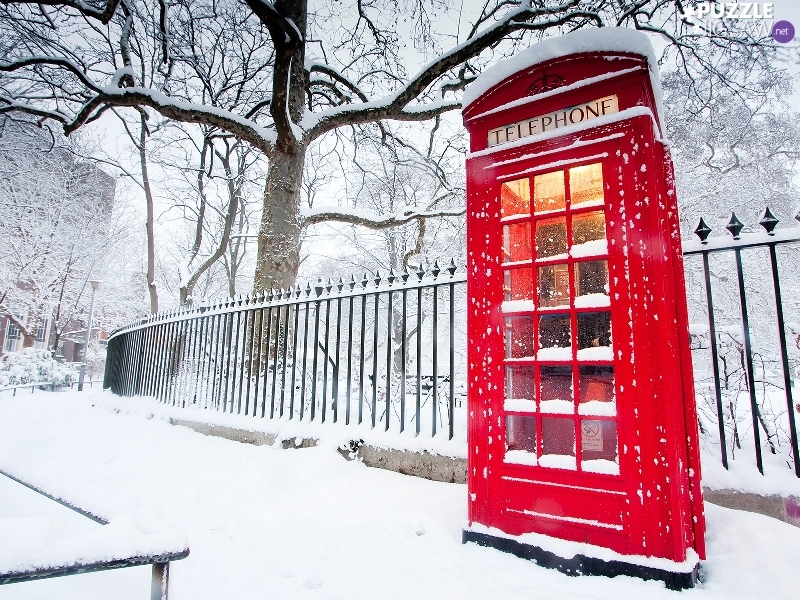 winter, phone, fence, booth