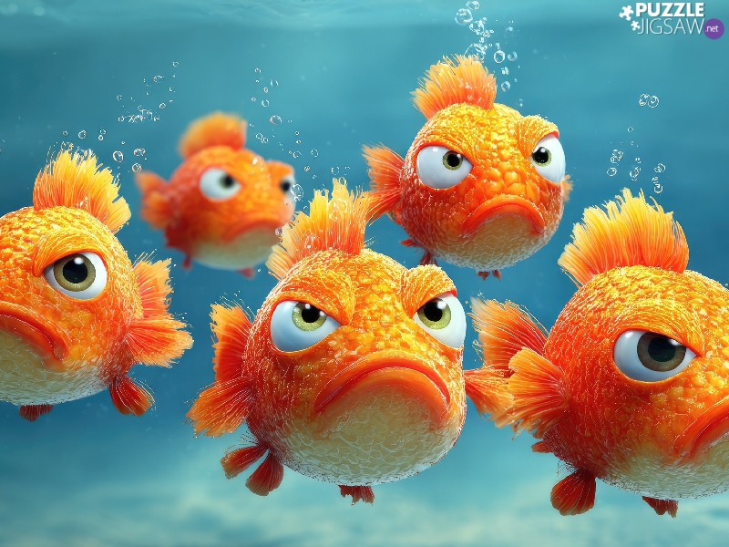grimace, Orange, water, fish, Funny, sigh, graphics