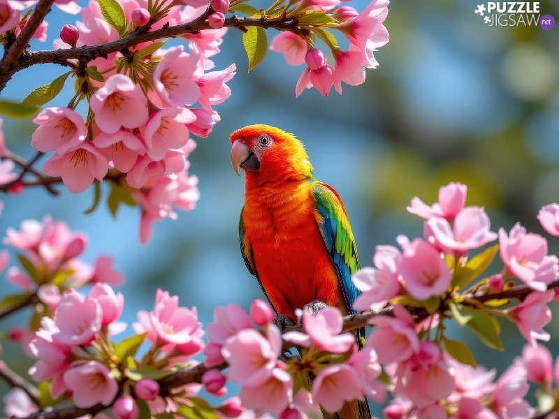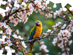 Coloured, Flowers, Fruit Tree, parrot