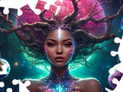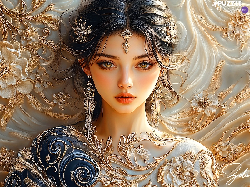 make-up, graphics, Flowers, ornament, jewellery, Women