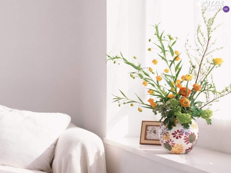 Window, Orange, Flowers, Vase