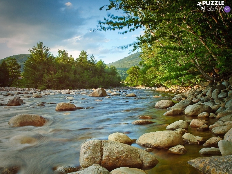 forest, lake, Stones