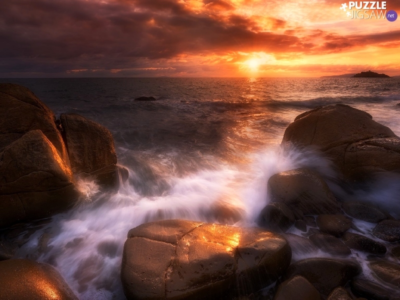 Stones, sea, Great Sunsets
