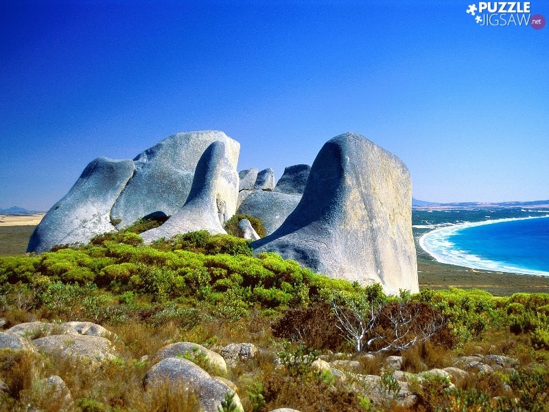 smooth, Bush, Gulf, Sky, rocks, Stones