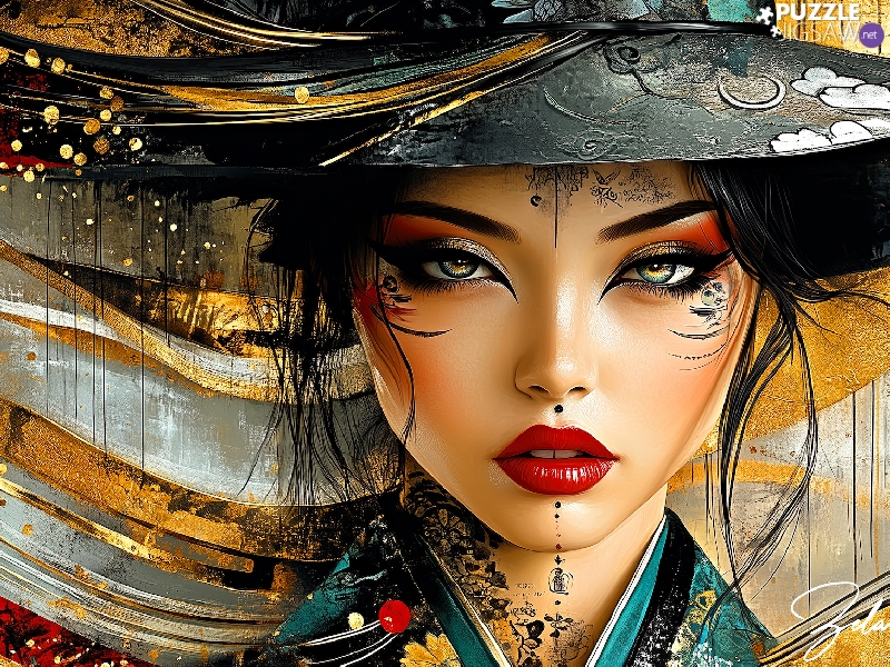 make-up, Women, Hat, graphics, Tattoo, Asian