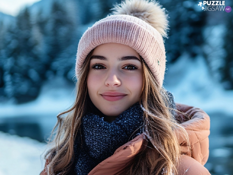 make-up, longhaired, Jacked, shawl, Hat, Women