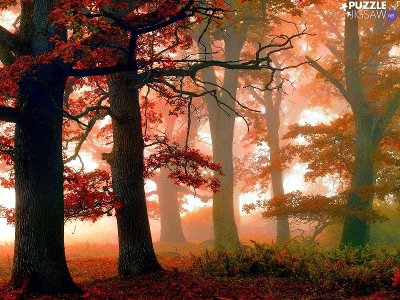 viewes, autumn, Leaf, Fog, Red, trees