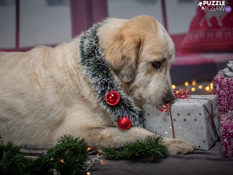 dog, Christmas, gifts, ornamentation