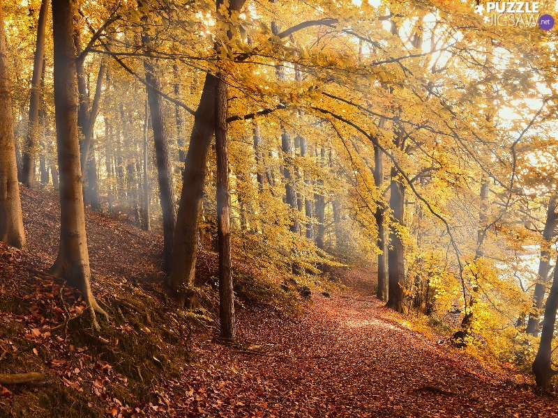 trees, viewes, Leaf, scarp, fallen, forest, autumn, Path