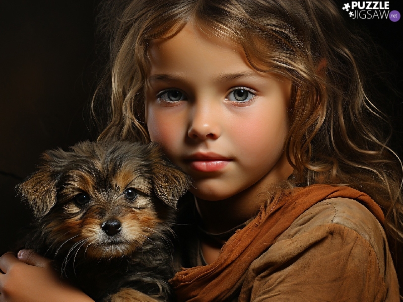 dog, Puppy, longhaired, girl, Kid