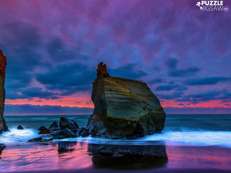 rocks, clouds, sea