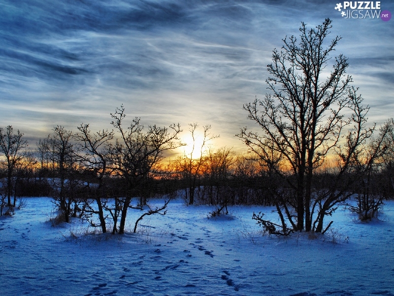 east, Bush, snow, sun