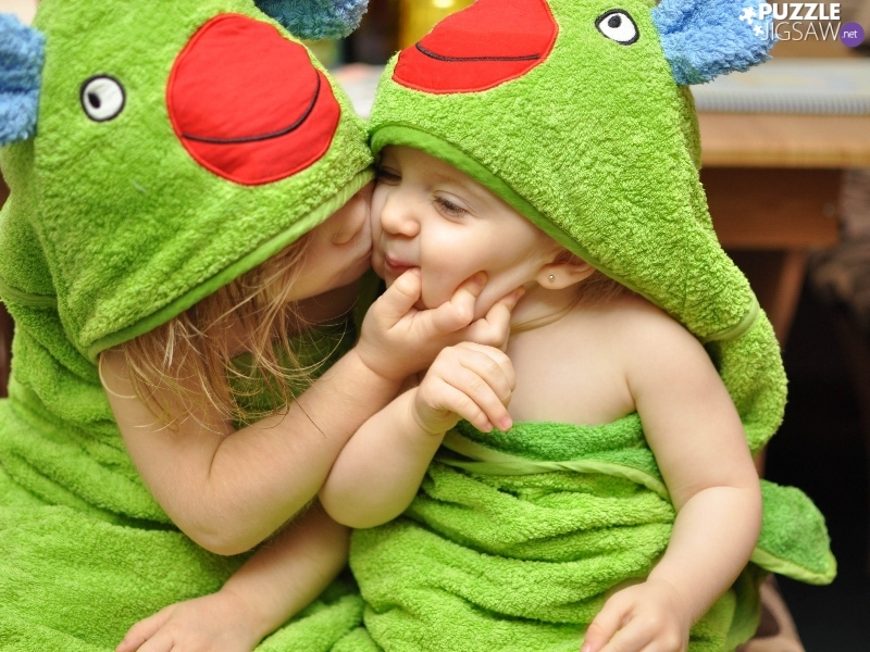 Towels, kiss, Kids, green ones, two