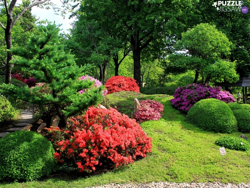 flourishing, Garden, trees, viewes, Bush, beatyfull