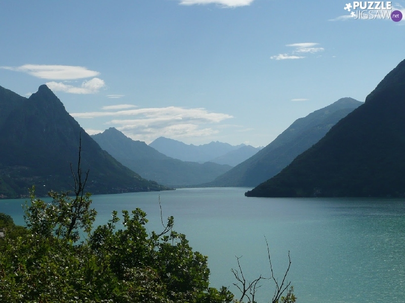 trees, viewes, water, Mountains, Lugano
