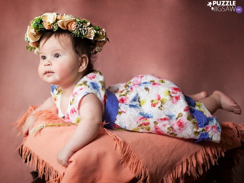 wreath, girl, Flowers