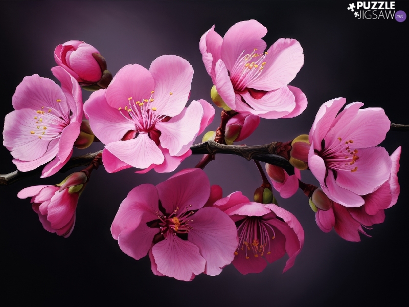 Fruit Tree, Pink, Black, Ai, background, Flowers