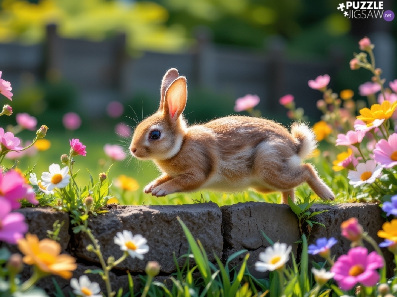 Rabbit, Flowers, ledge, color
