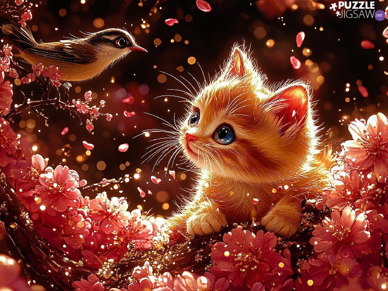 Bird, Flowers, small, cat, graphics