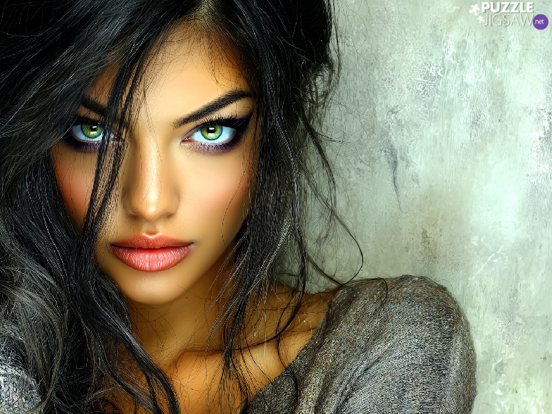 make-up, Women, Eyes, face, dark, green ones, graphics