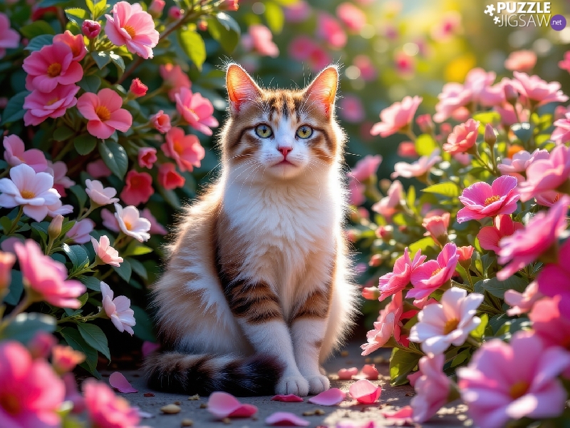 The look, Flowers, Red-white, cat, sitter