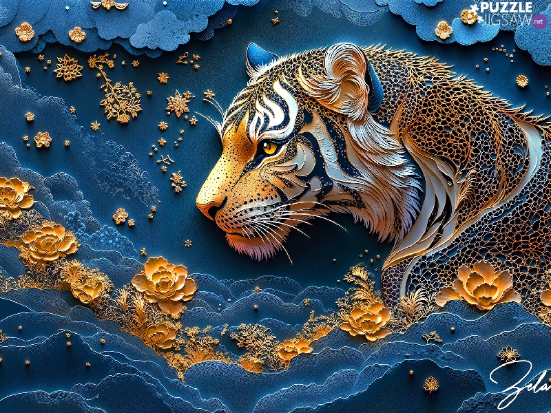 graphics, Head, Flowers, tiger