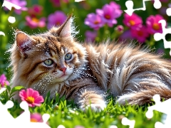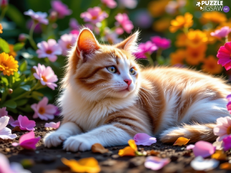 Flowers, cat, Red-white
